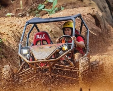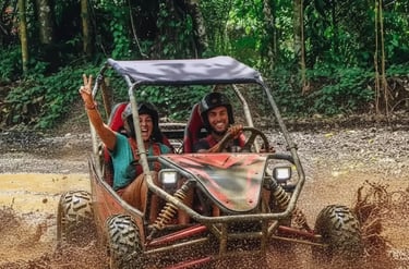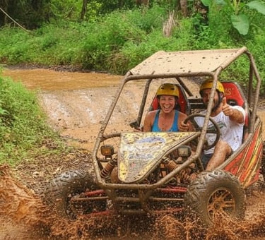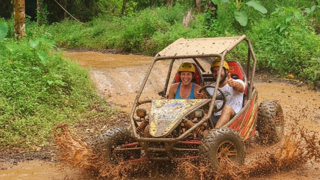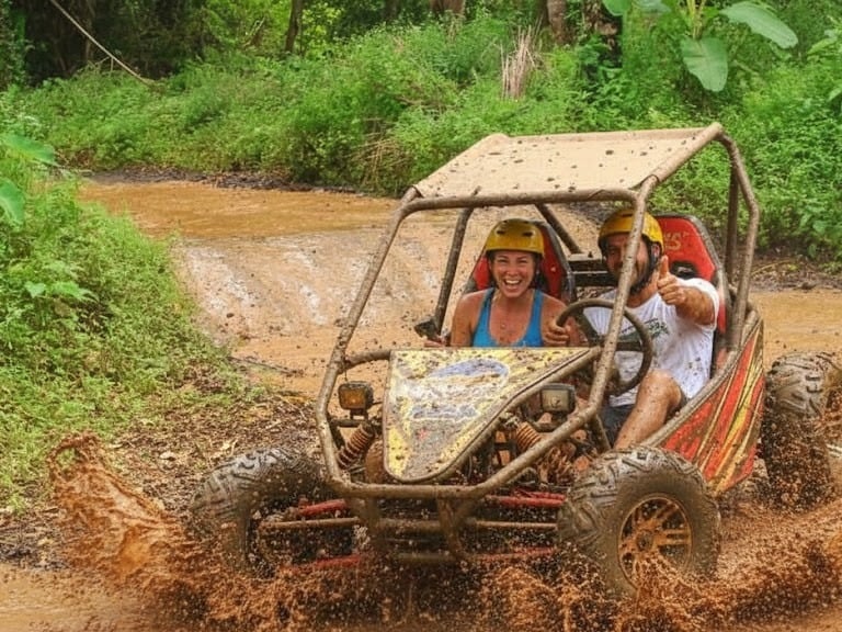 This adrenaline-filled buggy adventure takes you deep into untouched jungle, muddy off-road tracks, dark tunnels, rolling hills, and refreshing river crossings. Feel the power of your off-road buggy as you drive through challenging terrain surrounded by lush rainforest and natural scenery.